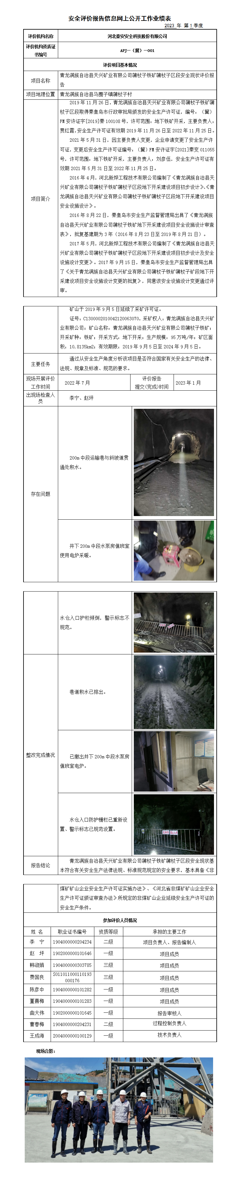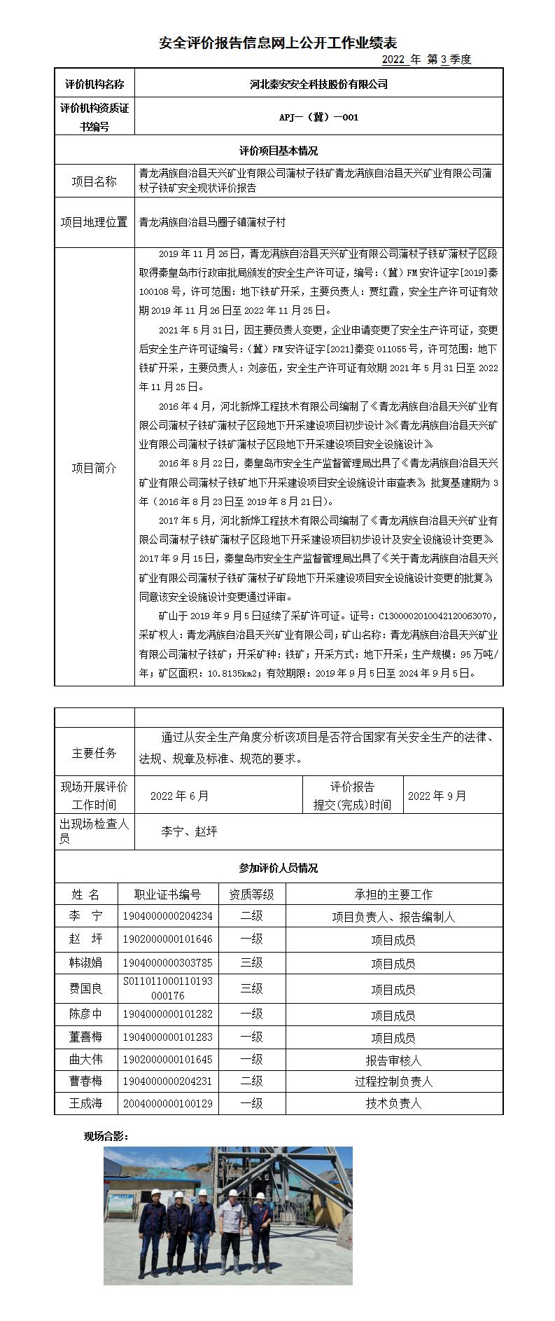 泊头市宏源加油站安全现状评价报告、青龙满族自治县天兴矿业有限公司蒲杖子铁矿青龙满族自治县天兴矿业有限公司蒲杖子铁矿安全现状评价报告——信息网上公开工作业绩表