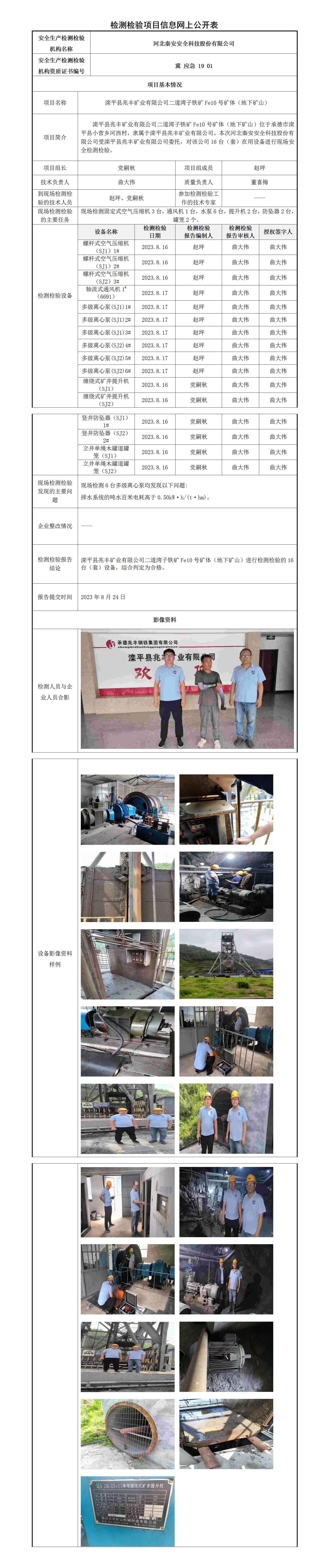 冀秦2023-0B20016滦平县兆丰矿业有限公司二道湾子铁矿Fe10号矿体(地下矿山)-----检测检验信息网上公开表