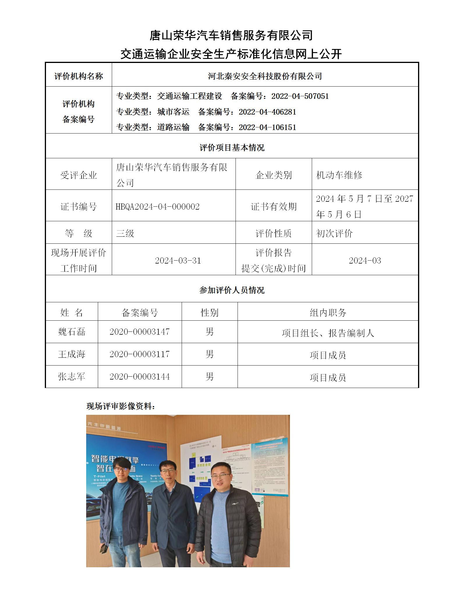唐山荣华汽车销售服务有限公司交通运输企业安全生产标准化信息网上公开