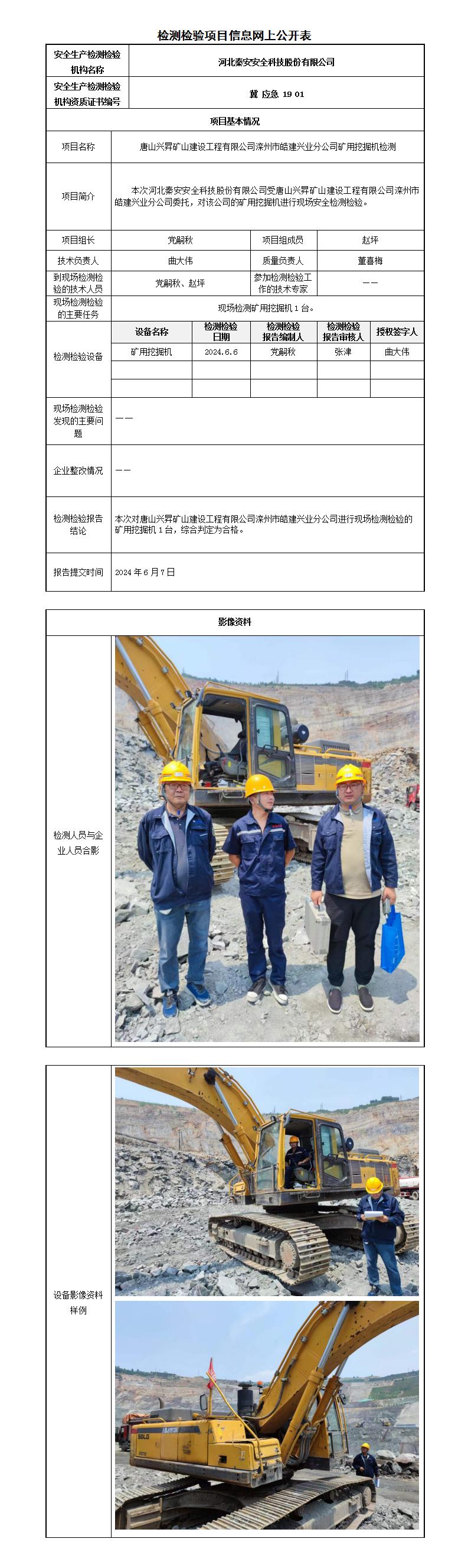 冀秦2024-0B20012唐山兴昇矿山建设工程有限公司滦州市皓建兴业分公司-----检测检验信息网上公开表