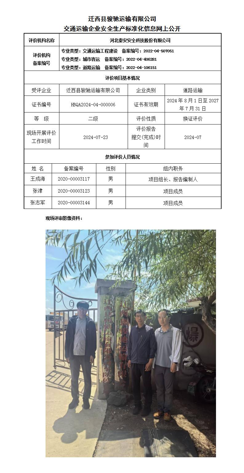迁西县骏驰运输有限公司交通运输企业安全生产标准化信息网上公开
