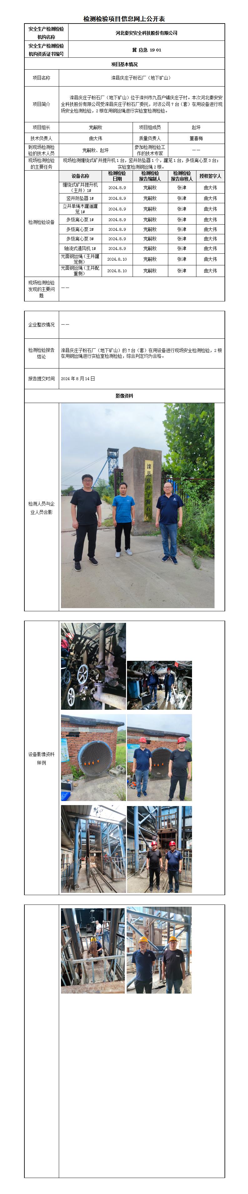 冀秦2024-0B20017滦县庆庄子粉石厂(地下矿山)-----检测检验信息网上公开表