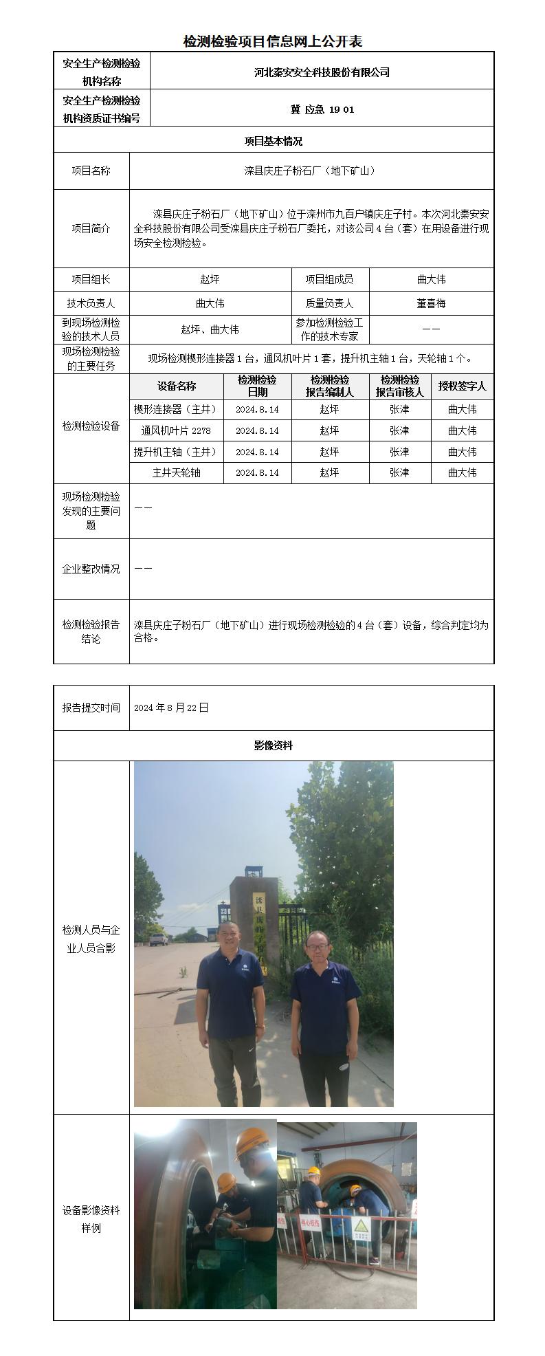冀秦2024-0B20017滦县庆庄子粉石厂(地下矿山)-----检测检验信息网上公开表(无损)