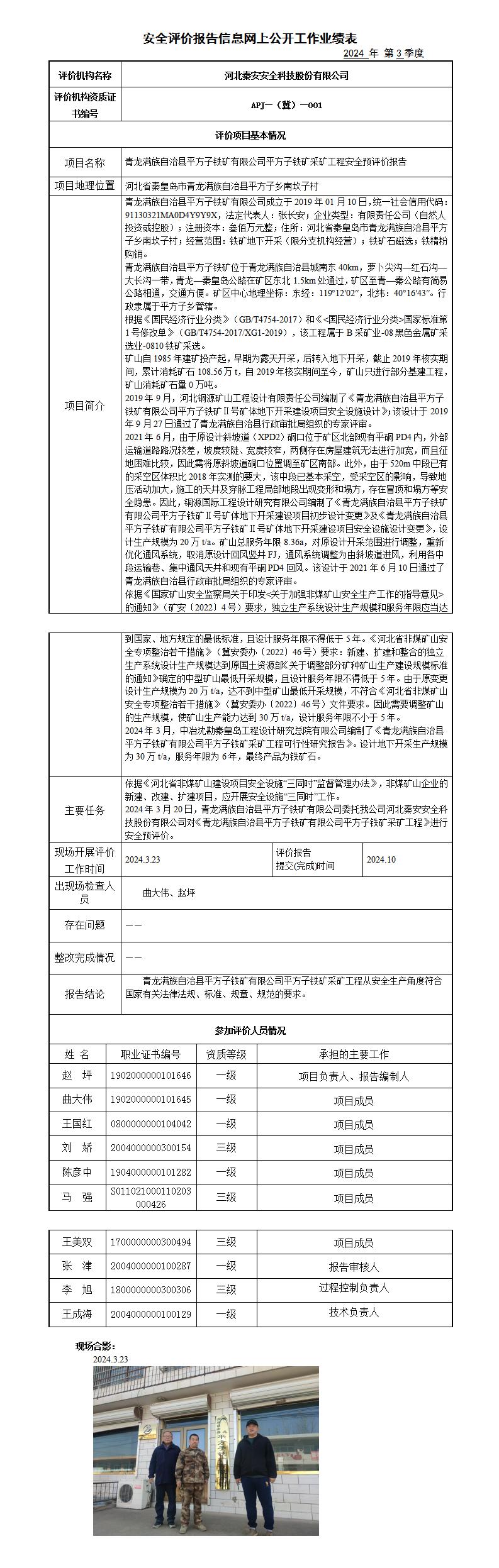 青龙满族自治县平方子铁矿有限公司平方子铁矿采矿工程安全预评价报告(1).pdf