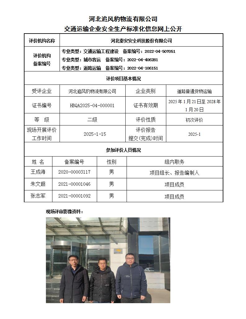 河北追风豹物流有限公司交通运输企业安全生产标准化信息网上公开