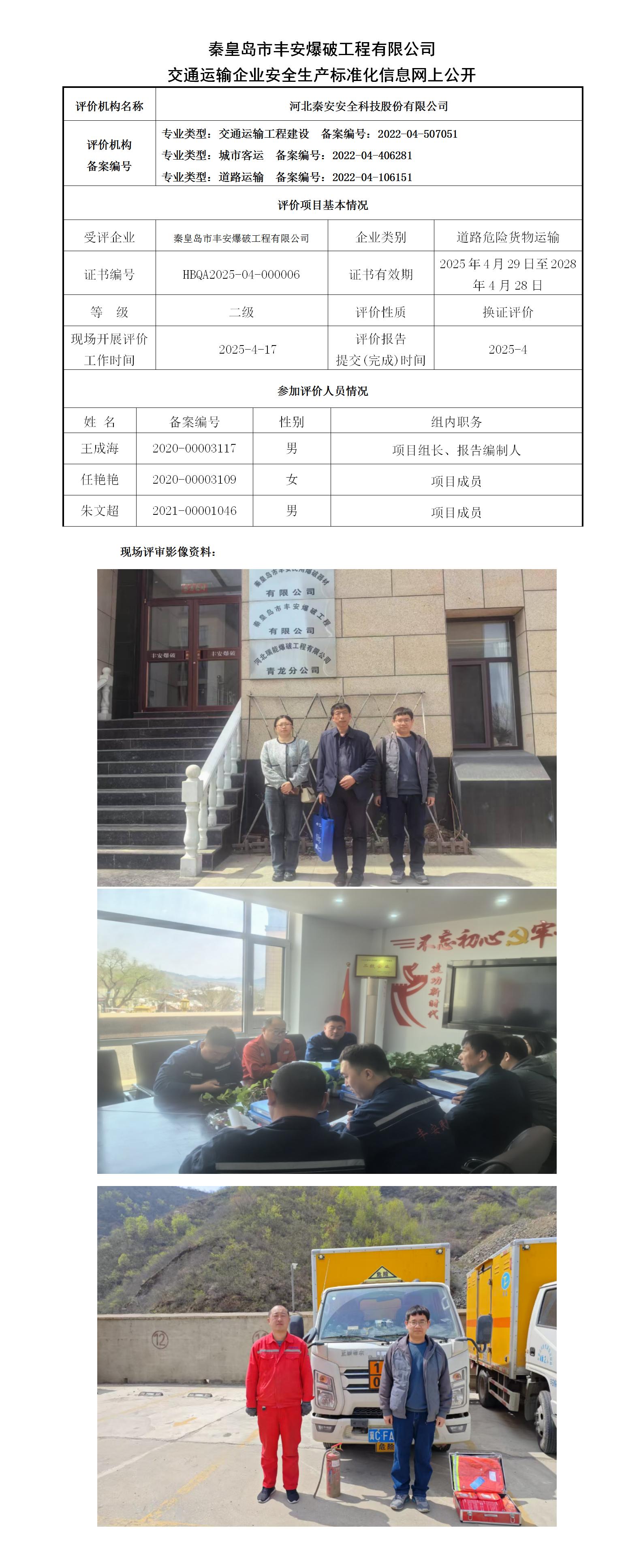 秦皇岛市丰安爆破工程有限公司交通运输企业安全生产标准化信息网上公开