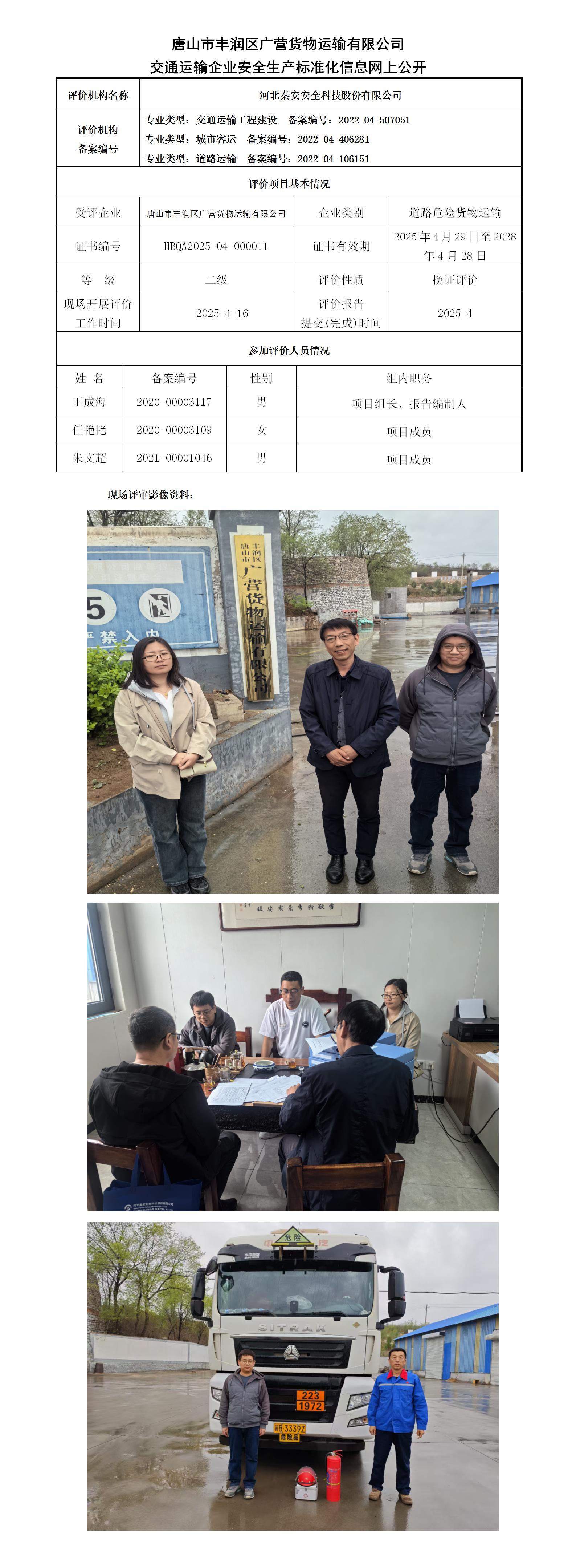 唐山市丰润区广营货物运输有限公司交通运输企业安全生产标准化信息网上公开