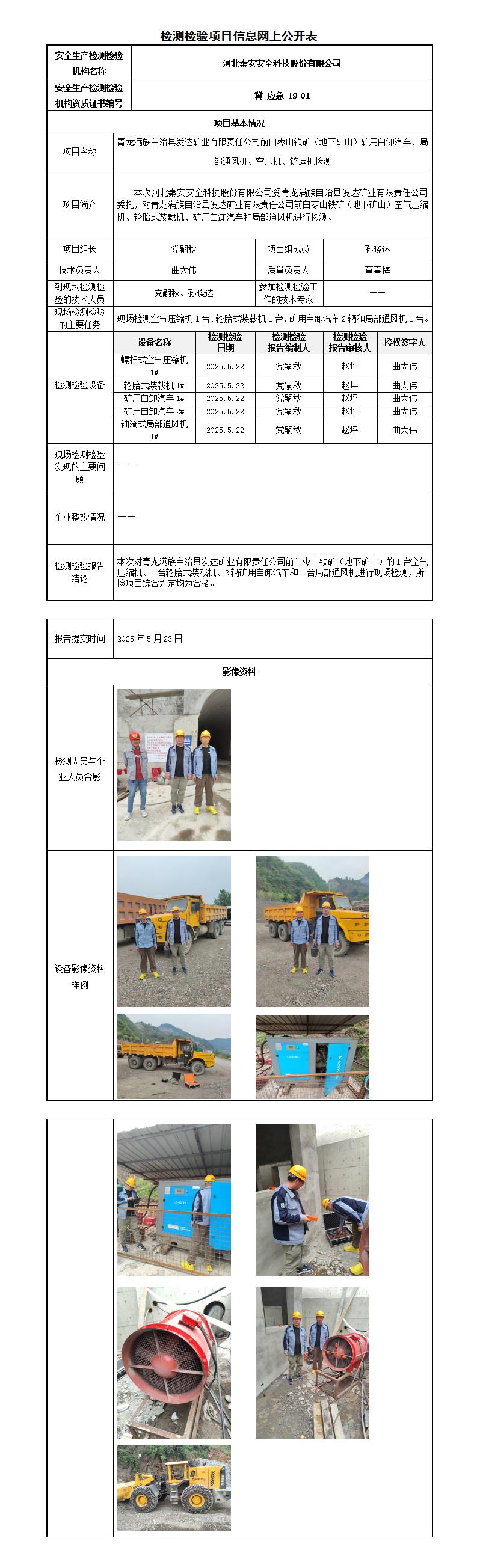 冀秦2025-0B20020 青龙满族自治县发达矿业有限责任公司-----检测检验信息网上公开表