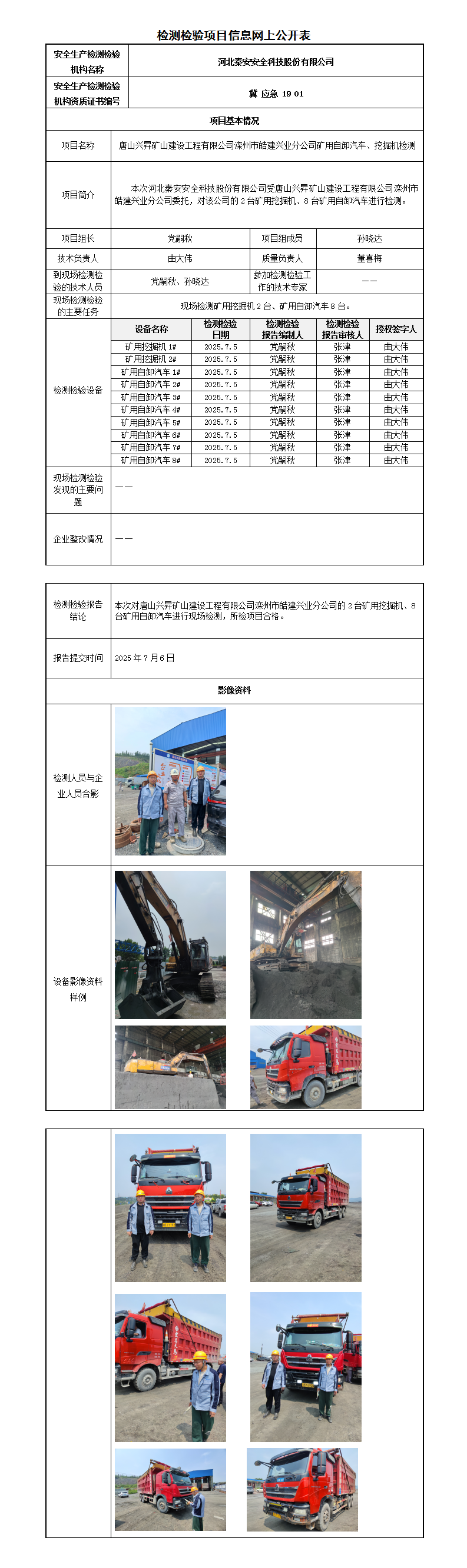 冀秦2025-0B20027唐山兴昇矿山建设工程有限公司滦州市皓建兴业分公司-----检测检验信息网上公开表