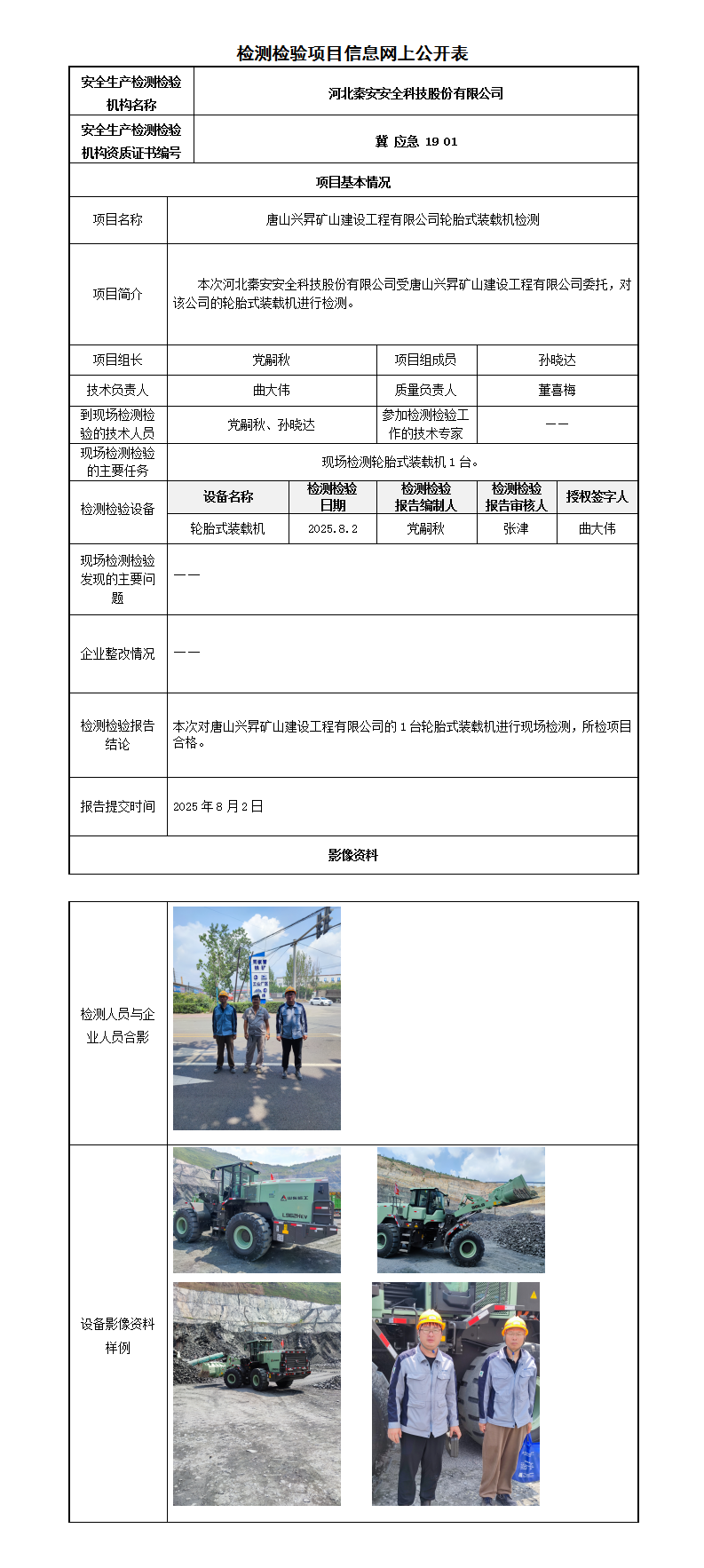 冀秦2025-0B20030 唐山兴昇矿山建设工程有限公司-----检测检验信息网上公开表