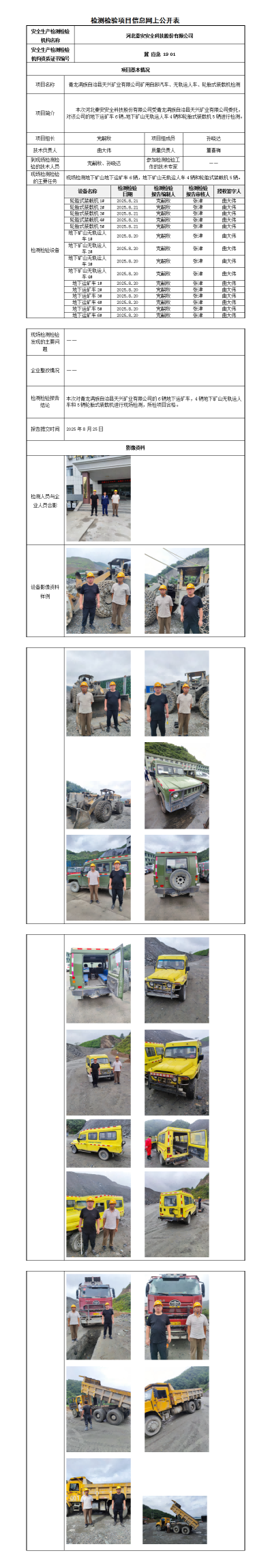 冀秦2025-0B20032 青龙满族自治县天兴矿业有限公司蒲杖子铁矿蒲杖子区段(地下矿山)-----检测检验信息网上公开表