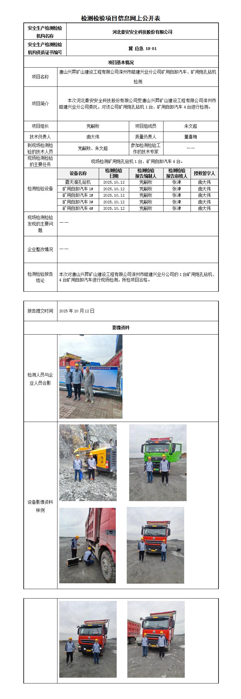 冀秦2025-0B20038 唐山兴昇矿山建设工程有限公司滦州市皓建兴业分公司-----检测检验信息网上公开表