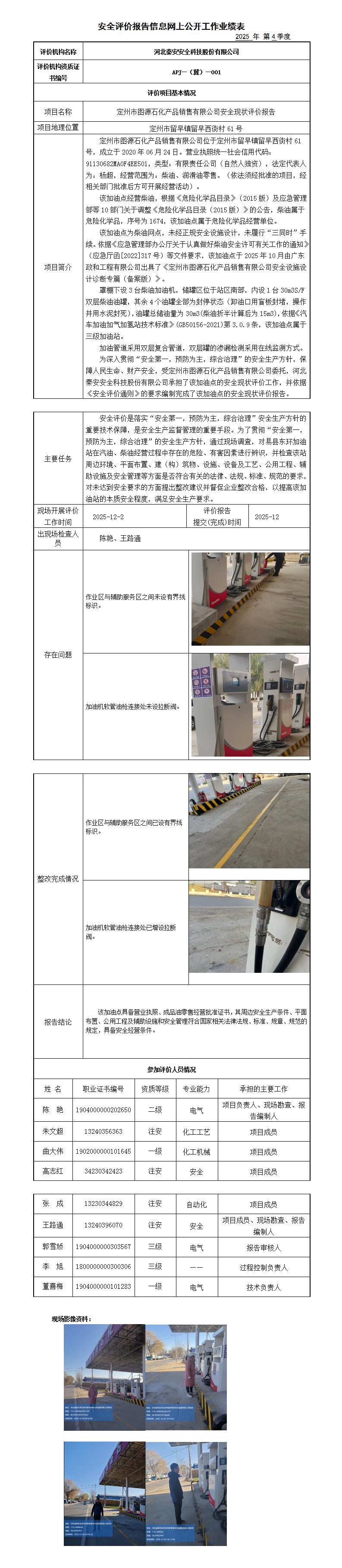 定州市图源石化产品销售有限公司安全现状评价报告——信息网上公开工作业绩表
