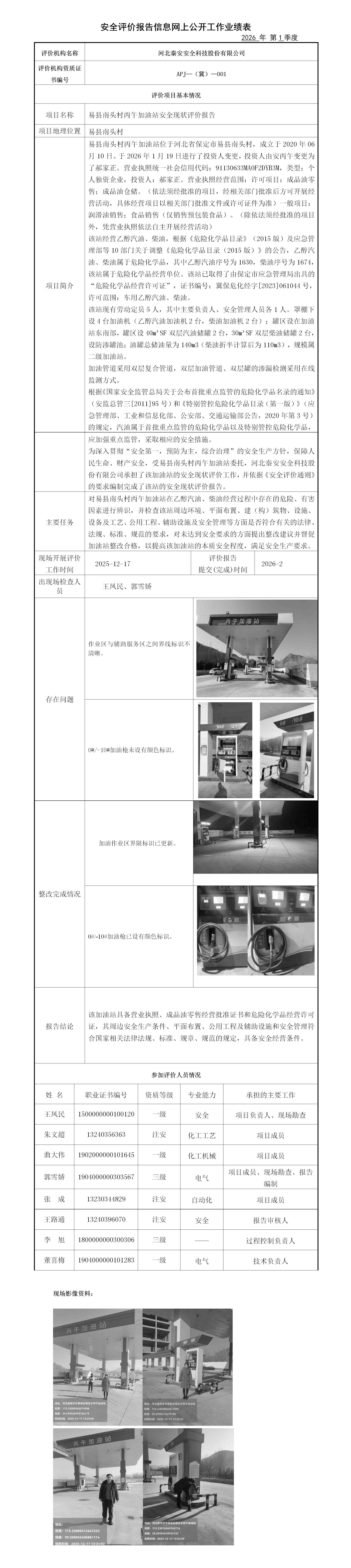 易县南头村丙午加油站安全现状评价报告——信息网上公开工作业绩表