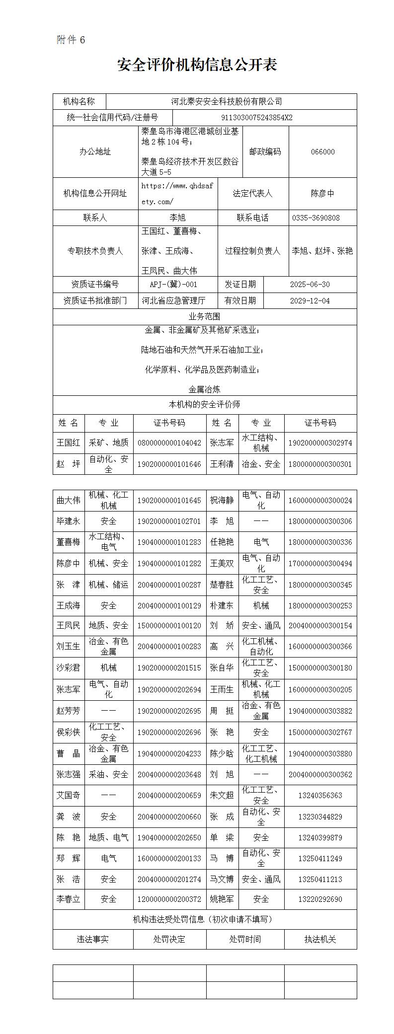 安全评价机构信息公开表-河北秦安安全科技股份有限公司2025.12.1