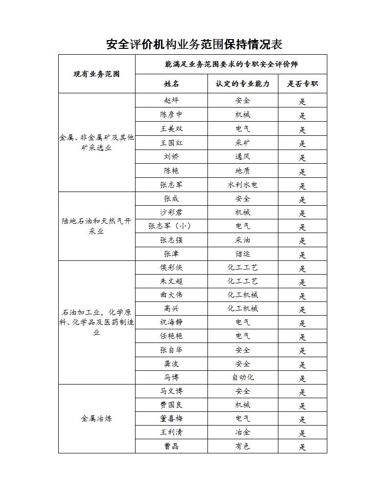 安全评价机构业务范围保持情况表2025.12.1