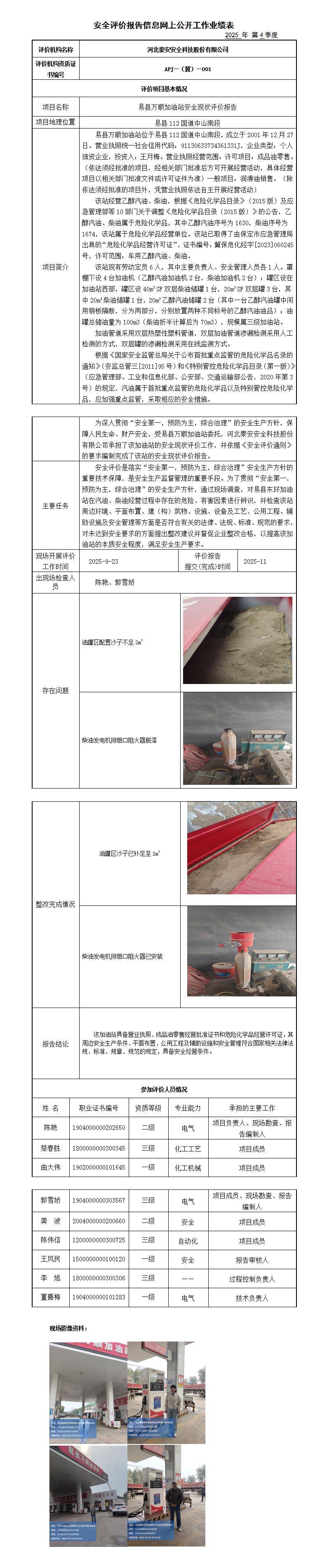 易县万顺加油站安全现状评价报告——信息网上公开工作业绩表